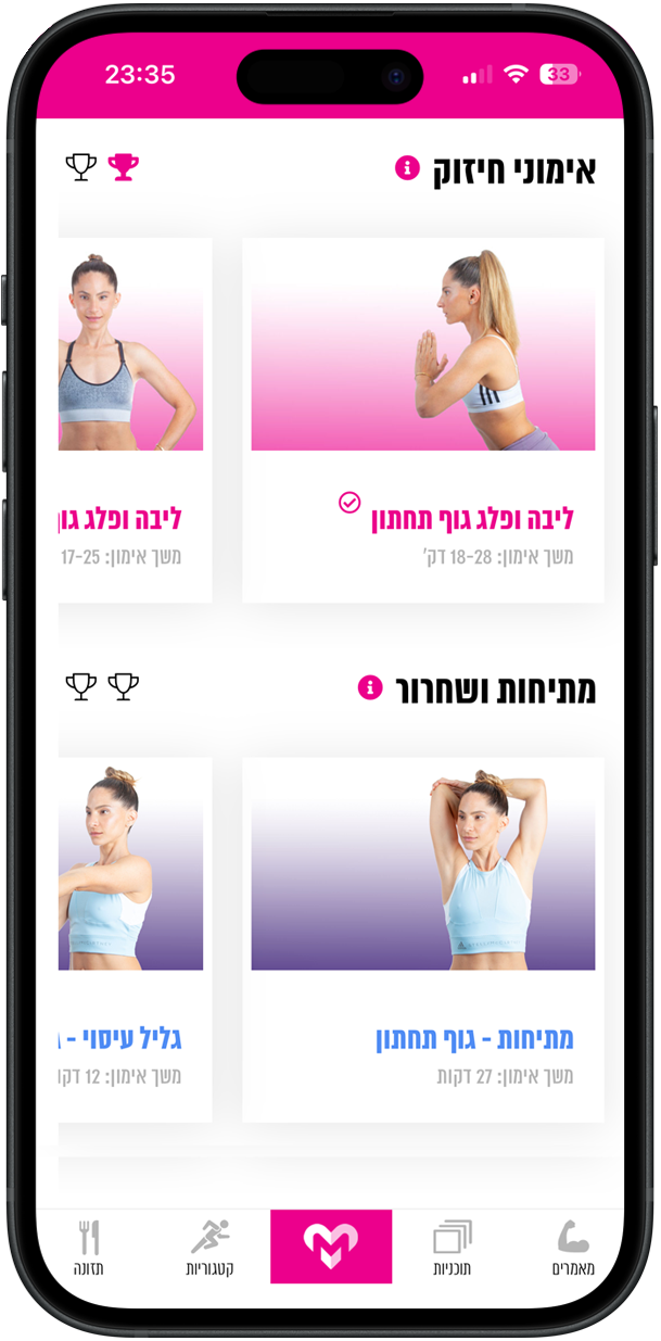הכירי את תוכנית הכושר הדיגיטלית 1+M, מתאימה לנשים שרוצות להתחיל נכון, להתחטב, לבנות כוח, גמישות וביטחון בגוף, כולל נשים אחרי לידות שרוצות לשקם את הגוף בהדרגה ובצורה בטוחה